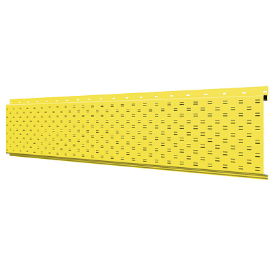 Линеарная потолочно-стеновая панель с ПЕРФОРАЦИЕЙ для вентиляции цвет RAL1018 Желтый применяется в качестве софитов для подшивы крыши, наружной и внутренней отделки потолков, стен, фронтонов фасада дома в Кирове.