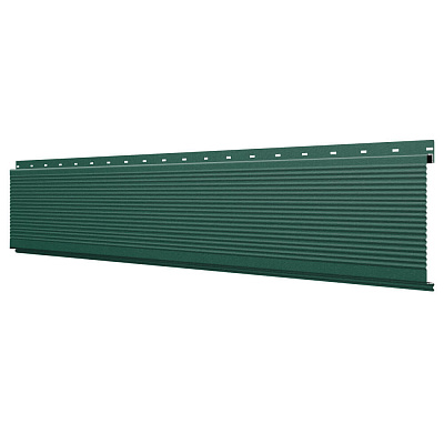 Линеарная потолочно-стеновая панель РИФЛЕНАЯ усиленная цвет RAL6005 Зеленый Мох Стальной Бархат применяется в качестве софитов для подшивы крыши, наружной и внутренней отделки потолков, стен, фронтонов фасада дома в Кирове.