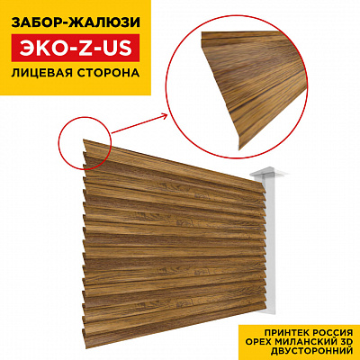 Ламель металлическая Z-образная усиленная ЭКО-Z-US, цвет под дерево Орех Миланский 3D Принтек Россия двухстороннее покрытие, длина любая кратно 1см под заказ - для забора-жалюзи, беседки, перголы в Кирове