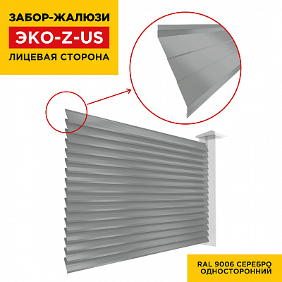 Ламель металлическая Z-образная усиленная ЭКО-Z-US, цвет RAL 9006 Серебро, длина любая кратно 1см под заказ - для забора-жалюзи, беседки, перголы в Кирове