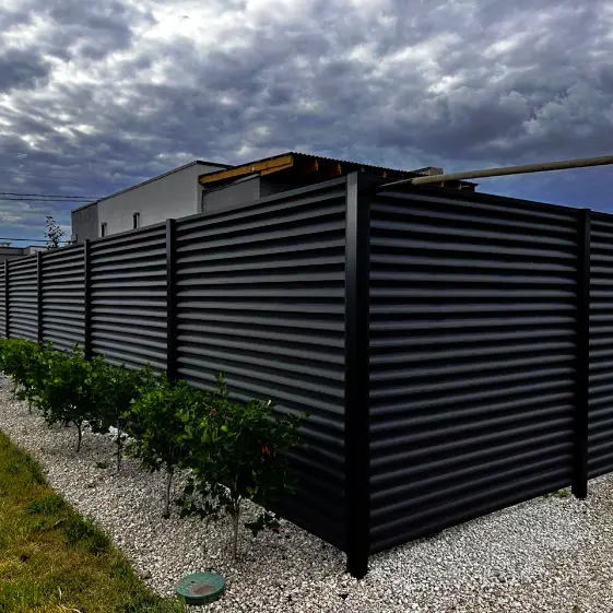 Черный матовый забор-жалюзи с ламелями Еврожалюзи RAL9005 МАТТЕ — это не просто ограждение, а воплощение стиля и респектабельности. Глубокий матовый оттенок придает ему благородную строгость, а двустороннее исполнение делает его одинаково безупречным с любой стороны. Такой забор не только надежно защищает территорию, но и подчеркивает статус владельца, создавая атмосферу современной роскоши и уверенности в каждом штрихе.